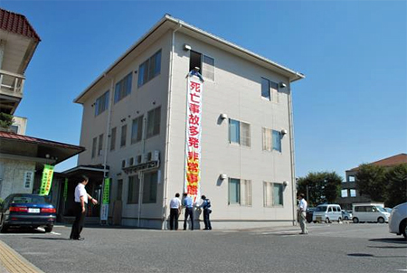 平成25年度秋の全国交通安全運動を前にして死亡事故抑止のための懸垂幕を用意しました。この懸垂幕は、管内の死亡事故防止に対する警告の思いを込めて、東近江市役所・愛荘町役場・日野町役場にも設置していただいております。