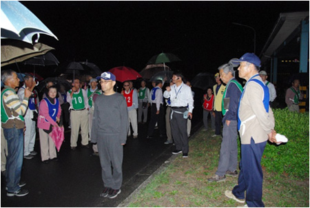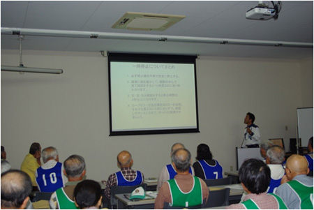 平成26年9月24日 午後6時から八日市自動車教習所をおかりして、『高齢者交通安全教室』を行いました。今回は、東近江市老人クラブ連合会の会員約50名の参加をいただきました。まず、自動車教習所の指導員のかたによる、高齢者の交通事故の現状等について講習を受けて頂きました。そのあと、実技研修としまして教習コースをつかって夜間における視認性についてや、反射材の有効性・道路横断時の危険性について、体験して頂きました。参加された皆さんは、日ごろからよく気を付けていただいていることばかりでしたが、あらためて体験していただいたことにより、より深くご理解いただけたことと思います。