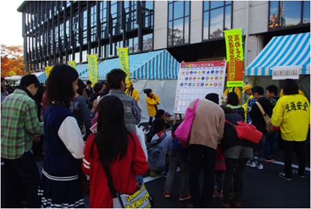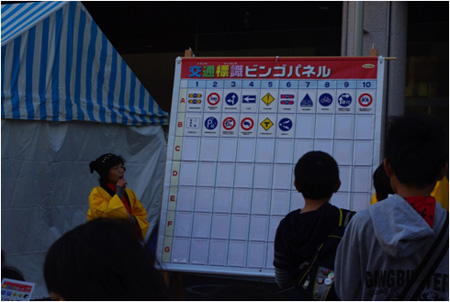 平成26年11月3日 二五八まつりに参加しました。午前・午後 2回にわけて 子どもたちを中心に『交通安全標識ビンゴ』をおこないました。各回50名の参加を募りまして、ビンゴを行いました。標識について、1つ1つ説明しながらビンゴを進めいていきました。早くから、リーチになっていた子達も、ビンゴとなるとなかなか達成できず、最後までのこっていた子もいました。ビンゴカードと参加賞の交換になっていましたが、一緒に参加してくださった保護者の方より、『家で勉強しますから』と、ビンゴカードを何枚か持って帰られた方もいらっしゃいました。おうちの団欒の中で、このビンゴカードが話題になってくれると うれしいです。