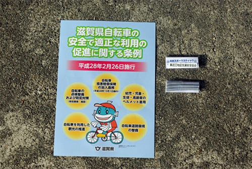 4月15日(金)朝の通学時間に、秦荘中学校前にて、生徒の皆さんに自転車事故防止の呼びかけをおこないました。