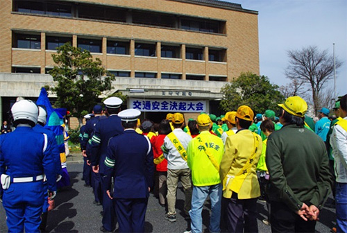 また同日午前10:00より 日野町役場にて、『交通安全決起大会』が行われました。東近江地区の各種機関団体、市・町関係各位、警察官等が一同に会し決意表明のあと、巡回広報のパレードに出発しました。