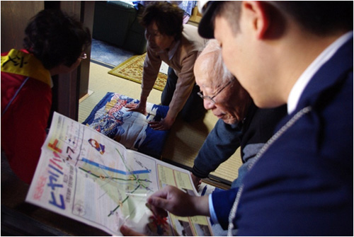 平成29年10月31日(火)東近江市五個荘簗瀬地区において、東近江交地区通安全協会女性部の皆さんが、高齢者のお宅を訪問して、交通安全や、振り込め詐欺などの注意をよびかけました。