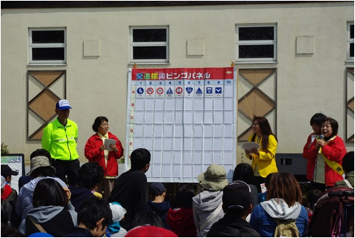 日野町ブルーメの丘のイベント会場で、来客の方向けに、『交通安全標識ビンゴ』を行い交通安全の啓発を行いました。