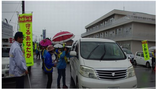 東近江市役所能登川支所前にて、シートベルトとチャイルドシートの着用促進の為に、能登川交通安全会の方々と合同で啓発活動を行ないました。