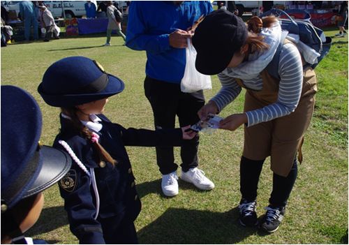 ジュニアポリスによる啓発活動と標識ビンゴを使い子ども達に標識に触れ,交通ルールを覚えて頂けるようにつとめました。