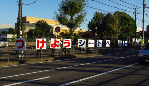 マナーアップ啓発として、交通量の多い国道421号線野々宮町交差点にてプレートを掲げてドライバーの皆さんに啓発を行いました。