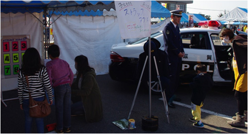 平成30年11月11日(日)に開催された蒲生いきいきあかねフェアーでは、ストラックアウトを来場された子供達を対象に実施し、ビンゴになれば反射材の啓発品やアメ等のすくい取りをして楽しみながら参加して頂きました。