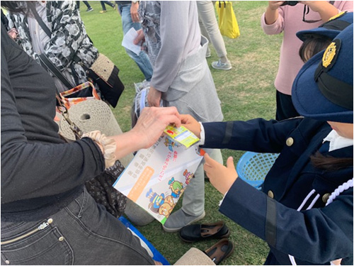 令和元年10月20日(日)東近江市ふれあい運動公園にて、能登川ふれあいフェアーでは地元の幼稚園児さんによるジュニアポリスが来場者に啓発品を配らせて頂きました。お子様対象の標識ビンゴにも多数の参加をして頂き楽しく標識について学んで頂きました。