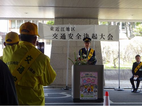 令和2年4月6日(月)東近江市役所本館正面玄関前にて、春の全国交通安全運動が4月6日(月)から4月15日(水)に開催されることにより一致団結して取り組めるように決起大会をおこないました。