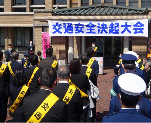 春の全国交通安全運動が4月6日(火)から4月15日(木)に開催されることにより一致団結して取り組めるように愛荘町役場愛知川庁舎にて決起大会をおこないました。