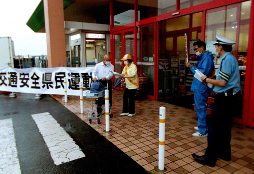 令和3年6月と7月に愛荘町内にて2件の交通死亡事故が発生しました。フレンドマート秦荘店にて来店者に交通安全意識の高揚と交通事故死亡者数の一層の減少を図ることを目的に啓発しました。
