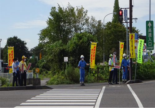 彦根・栗東の高速隊と合同で、のぼり旗を持って八日市インター付近交差点の通行車両に対し立番啓発を行いました。