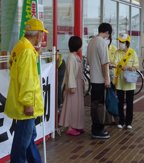 令和4年9月27日(火)平和堂フレンドマート能登川店において、『秋の全国交通安全運動』の横断幕・のぼり旗を掲出して、来店者に啓発品を配付しました。