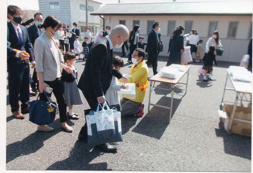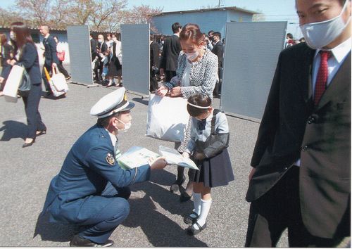 東近江市・日野町・愛荘町の各小学校において、東近江市・日野町・愛荘町の小学校の入学式に、役員が出向き新入学児童に連絡帳などの啓発品を手渡し、交通安全の声掛けを致しました。
