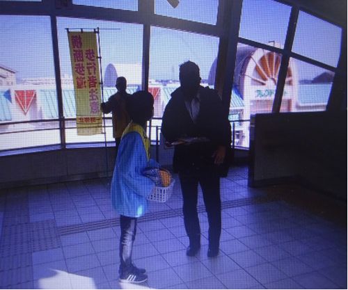 JR能登川駅において、のぼり旗やハンドプレートを掲出して乗降客に交通安全を呼びかけました。